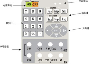 當(dāng)電池電量耗盡的時候(屏幕閃動或者按開機鍵無法開機),把充電器由此口插入進行充電,充電時候可同時進行測量或者輸出,