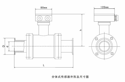 b、分體型:傳感器和轉(zhuǎn)化器分離安裝,通過連接電纜形成流量計(jì)量系統(tǒng)。